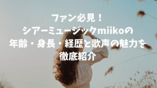 シアーミュージック ファン必見!シアーミュージックmiikoの年齢・身長・経歴と歌声の魅力を徹底紹介 シアーミュージックmiikoの年齢・身長・プロフィールや経歴を徹底解説!本厚木校での活動や歌声の魅力、ファン必見の最新情報まで紹介します。 2025.09.28 シアーミュージック