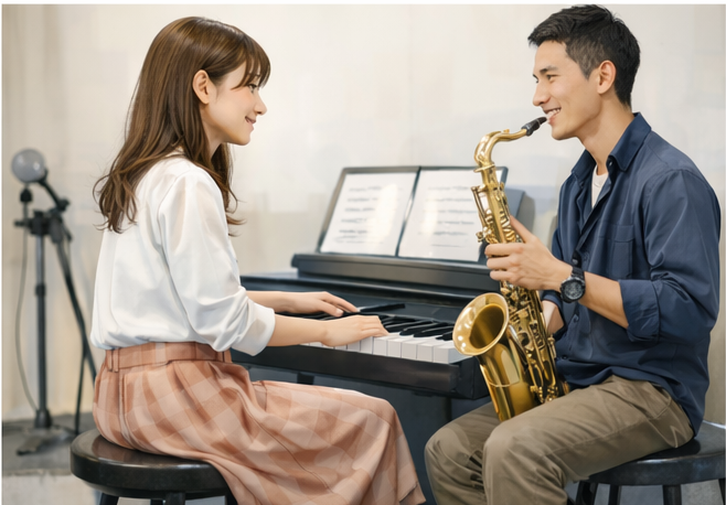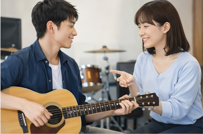 個人差はありますが、早い方では1〜2ヶ月ほどで変化を実感することがあります。特に初心者の方は、「音が出しやすくなった」「簡単な曲が弾けた」など、小さな成長を感じやすいです。体験時に目標を伝えると、上達のイメージもしやすくなります。