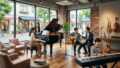 代官山というおしゃれな立地にふさわしい、洗練された内装と、カフェのような居心地の良いラウンジが特徴。単に楽器を習うだけでなく、音楽を通じた交流や、クリエイティブな時間を楽しむ場として設計されています。