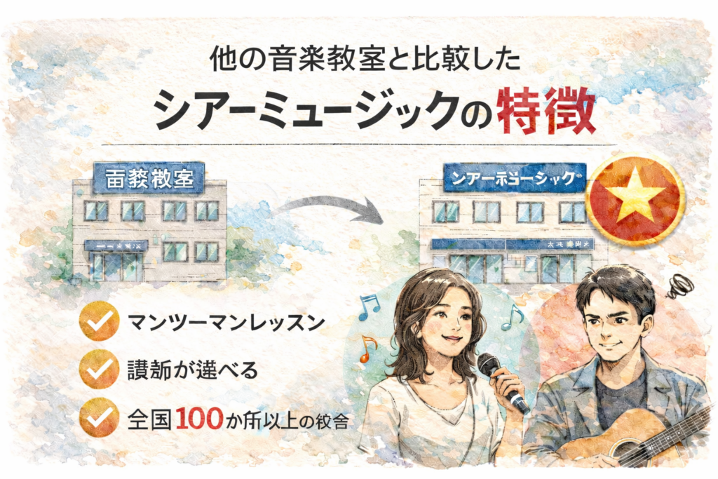 シアーミュージックは、始め方さえ間違えなければ安心して通いやすい一方で、講師との相性・予約の取りやすさ・料金の納得感を確認せずに入会すると「思ってたのと違う…」となりやすい面もあります。